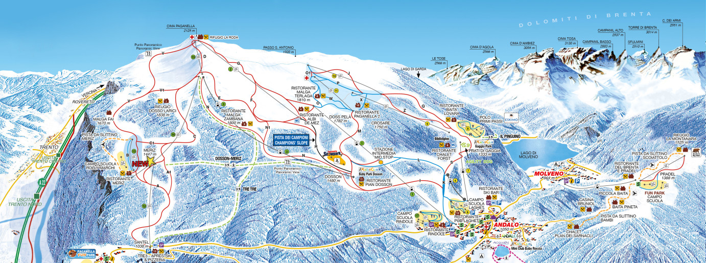 Andalo e Fai della Paganella sono serviti da 17 impianti di risalita che garantiscono una portata oraria di 27.000 persone.